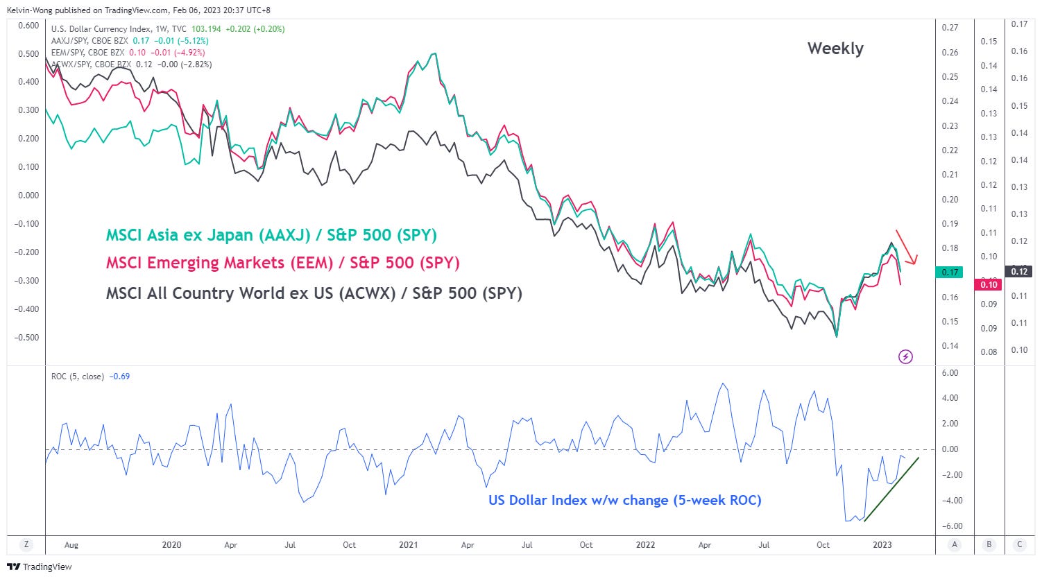 Emerging markets & Asia ex Japan equities outperformance against S&P 500 may face headwinds