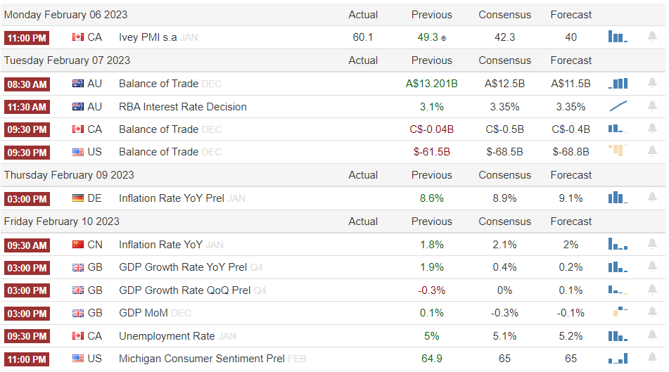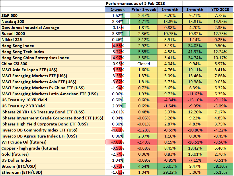 Weakness can also be seen in Gold (an increase in opportunity cost) via the expected weekly uptick in the US 10-year Treasury yield that included a daily gain of 13 bps recorded last Friday, 3 February, the highest single-day rally since 19 October 2022.